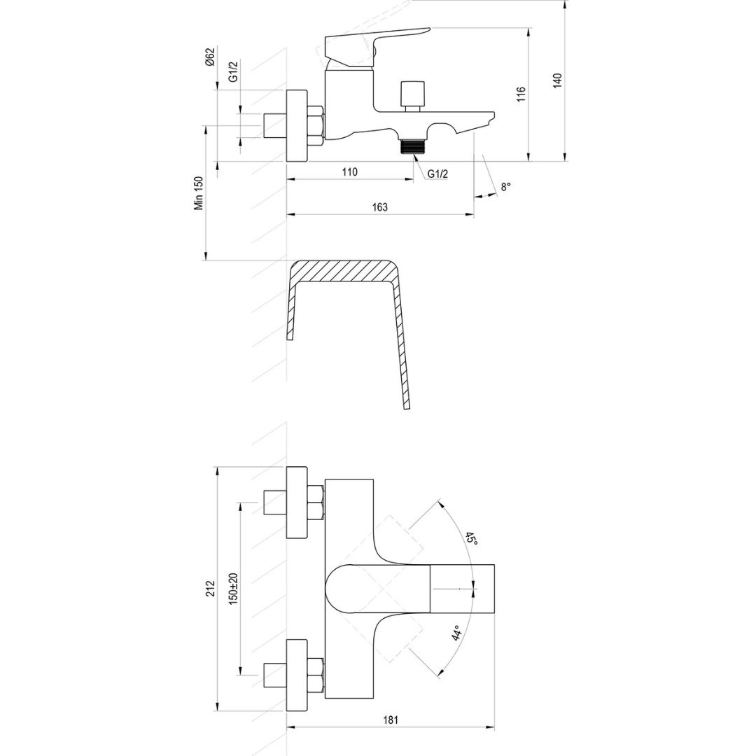 Характеристики Змішувач PN 022.20GB для ванни, графіт матовий
