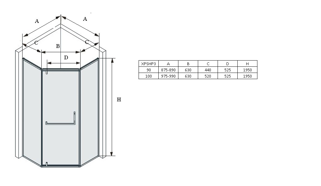 Характеристики Душова кабіна п'ятикутна XPSHP