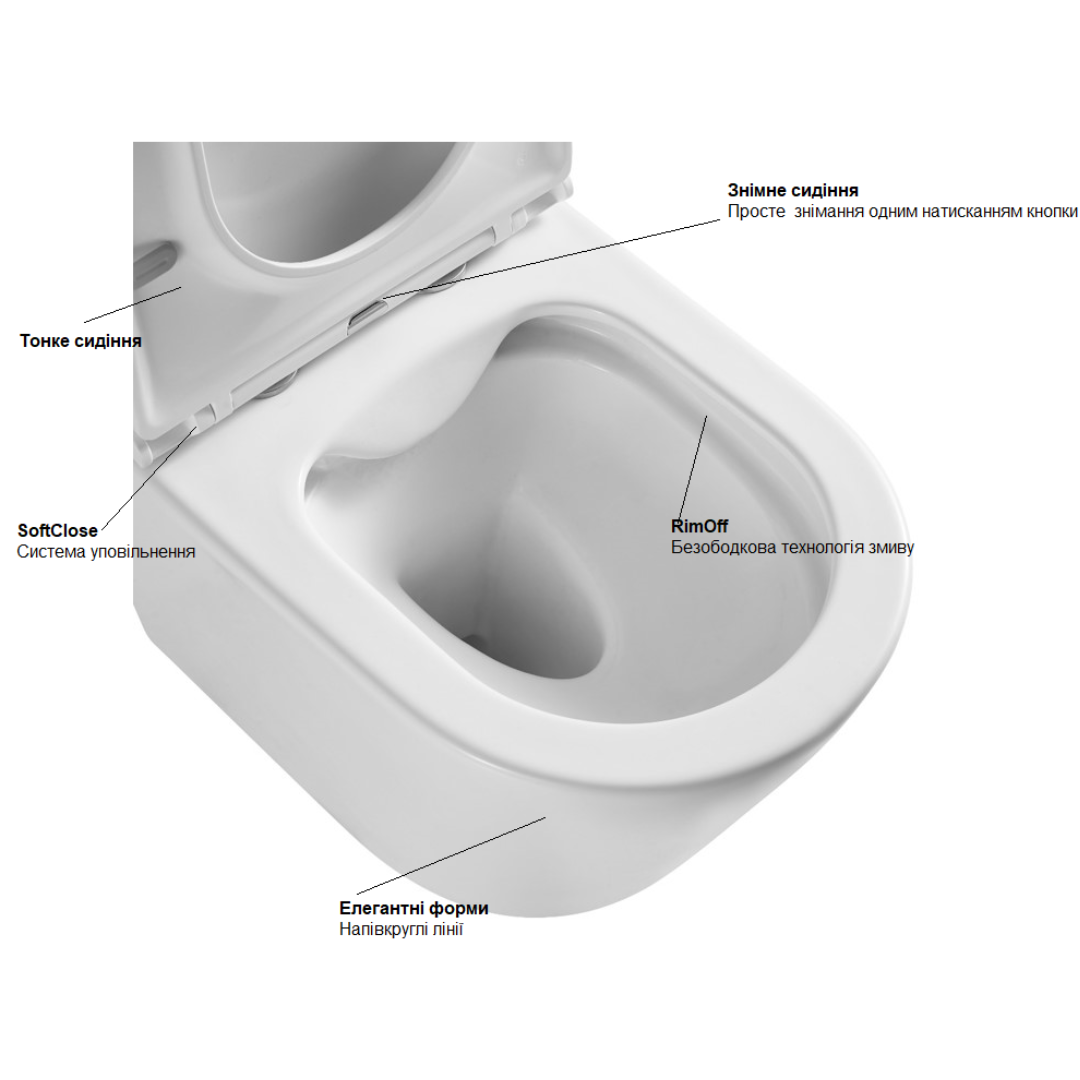 - RimOff – технологія ополіскування чаші без класичного бортика