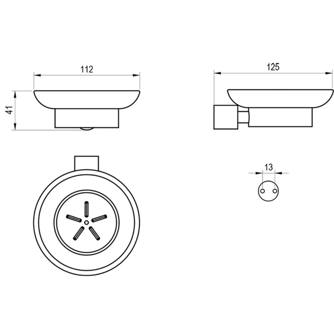 - Держатель для мыльницы крепится на двух дюбелях и регулировочной металлической зажимной пластине. Расстояние между винтами составляет 13 мм. Монтажный комплект входит в комплект. Держатель снабжен пластиковым кольцом с внутренней стороны для мягкого прилегания стеклянной емкости. Для внешней очистки рекомендуется использовать средство Ravak Cleaner Chrome.