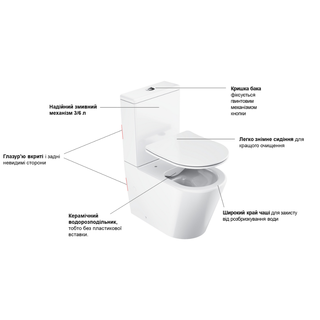 - Система замедления SoftClose для складывания сиденья унитаза.